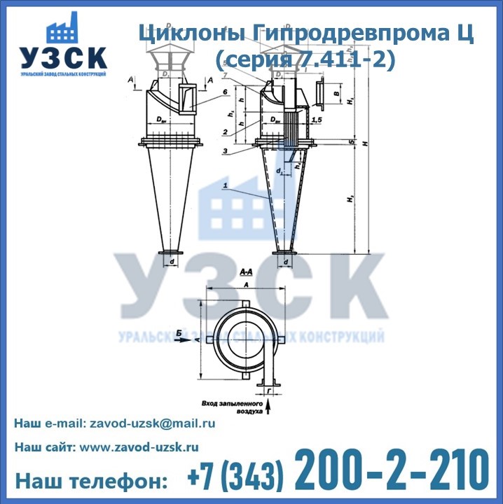 Циклоны Гипродревпрома Ц (серия 7.411-2) высокого качества можно купить в компании «УЗСК» в Караганде. Наши специалисты предоставят всю необходимую информацию информацию и помогут с выбором модели циклона. Подробные технические характеристики, конструкцию, параметры, ассортимент и стоимость продукции можно также найти на сайте УЗСК.