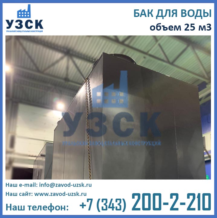 Бак проходит гидравлические испытания – емкость под заливом выдерживают 2 часа с простукиванием сварных швов. После испытания выполняют защиту от коррозии. Емкости оборудуют патрубками для заполнения и опорожнения сосуда с запорной арматурой. Устанавливаются указатели уровня, лестницы для обслуживания.